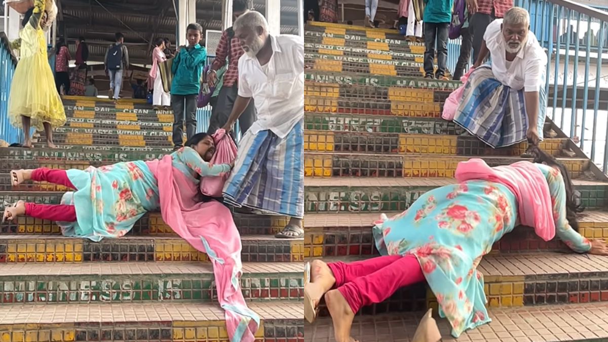 रील बनाने के लिए एक लड़की जानबूझकर रेलवे स्टेशन की सीढ़ियों से गिर पड़ी। जब लड़की का वीडियो सोशल मीडिया पर वायरल हुआ तो लोगों ने लड़की को जमकर खरी-खोटी सुनाया।source https://www.indiatv.in/viral/news/girl-fell-from-the-stairs-of-the-railway-station-to-shoot-the-reel-people-reprimanded-her-after-watching-the-video-2024-11-19-1091833